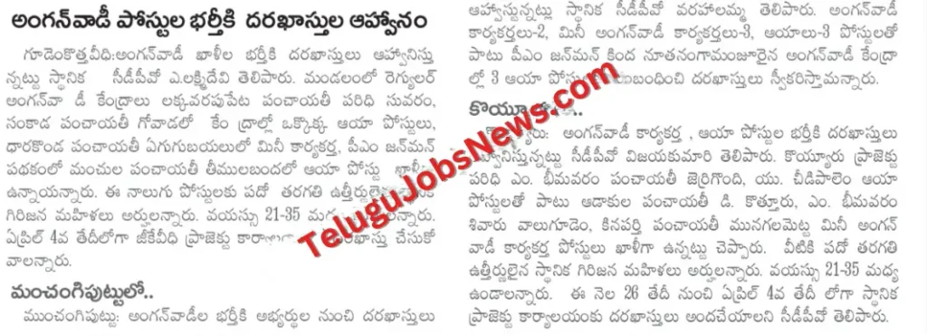 అంగన్వాడీ నుండి మినీ అంగన్వాడీ టీచర్ పోస్టులు, ఆయా పోస్టులను భర్తీ చేయడానికి అధికారిక నోటిఫికేషన్ విడుదల చేసింది.